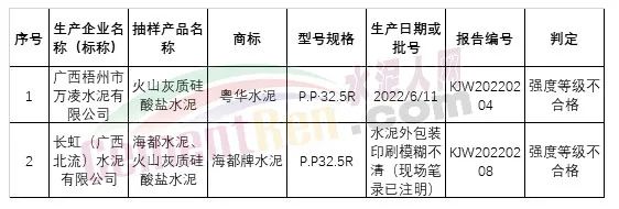 廣東云浮抽檢兩家廣西地區(qū)粉磨站32.5標號水泥抽檢強度不合格