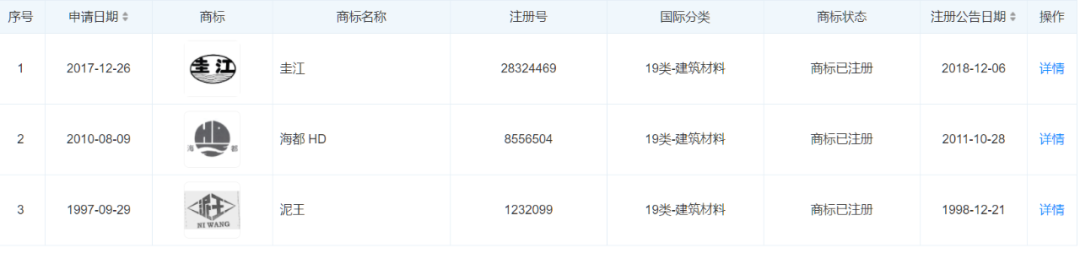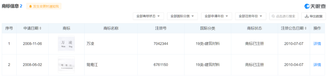 企業(yè)商標注冊信息顯示,旗下共有“萬凌”和“鴛鴦江”兩個注冊品牌,并沒有不合格品所列的“粵華水泥”注冊商標。