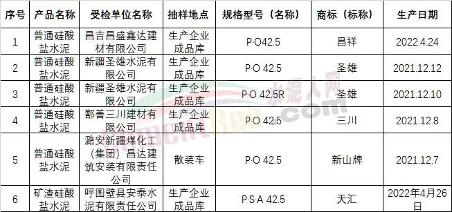 新疆通報6批次42.5水泥不合格,涉及一家全能水泥廠