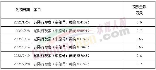 天長市千秋水泥有限責任公司因6起違法在公路上超限行駛案2022年內被天長市交通運輸局處罰3.6萬元。處罰日期分別1月、3月和7月。
