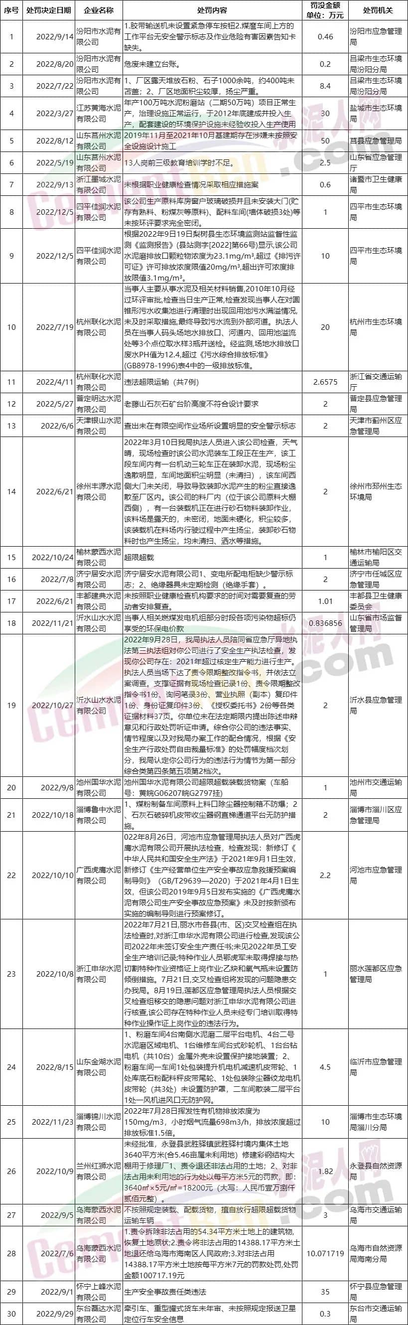 按照國務院安委會統(tǒng)一部署,從即日起至2023年全國“兩會”結束。同時各地生態(tài)環(huán)境、市場監(jiān)管、自然資源、交通運輸、衛(wèi)生健康部門對于工貿領域的檢查也呈常態(tài)化。水泥人網(wǎng)特將年內各區(qū)域公開處罰的部分水泥企業(yè)及相關處罰原因,匯總如下,以提醒相關企業(yè)引起重視。