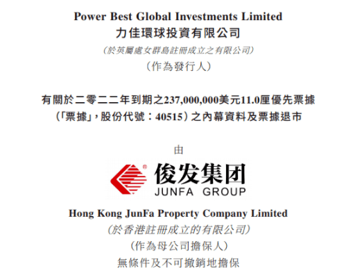2022年12月底“云南王”俊發集團公告稱無法按期償付2022年12月24日到期的2.37億美元11厘優先票據。