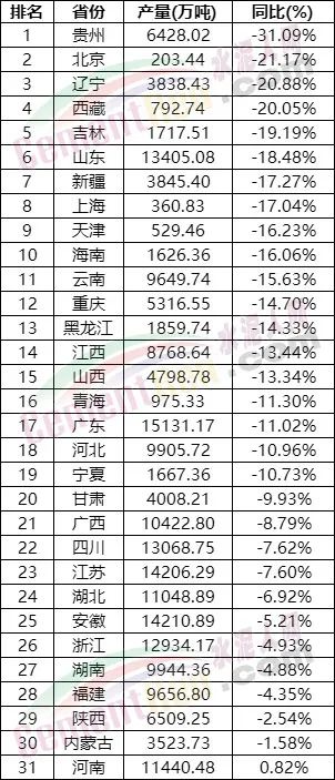 國家統計局數據顯示,12月水泥產量為1.68億噸,同比下降12.3%;2022年產量為21.18億噸,同比下降10.8%。從分省數據來看,2022年全國4個省市水泥產量降幅超20%,貴州降31.09%、北京降21.17%、遼寧降20.88%、西藏降20.05%。