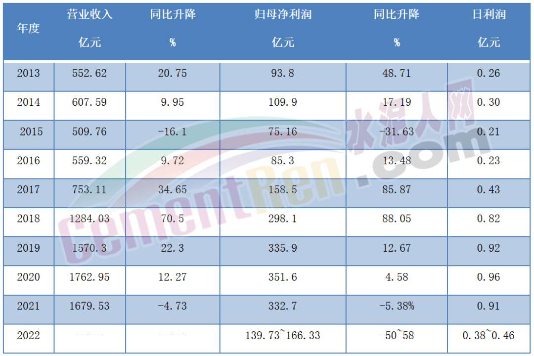 回顧海螺水泥近10年的歷史業績可見2019~2021三年間,其日賺利潤均達到9000萬以上。2017年日均利潤4300萬與2022年相當,海螺業績一夜回到五年前。