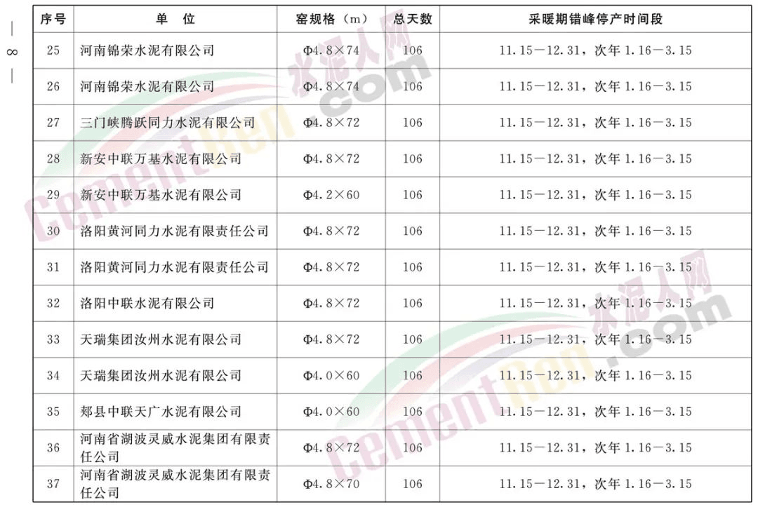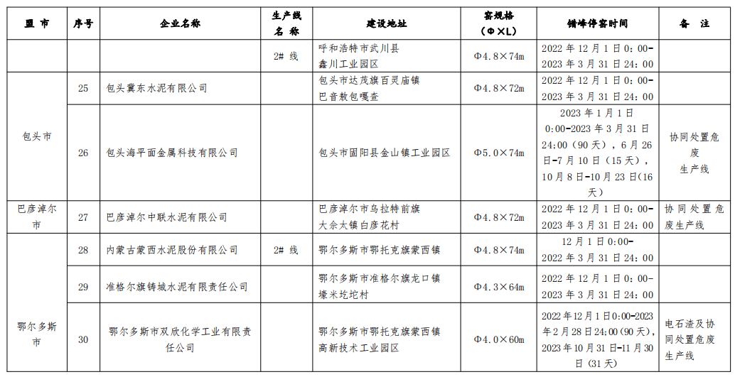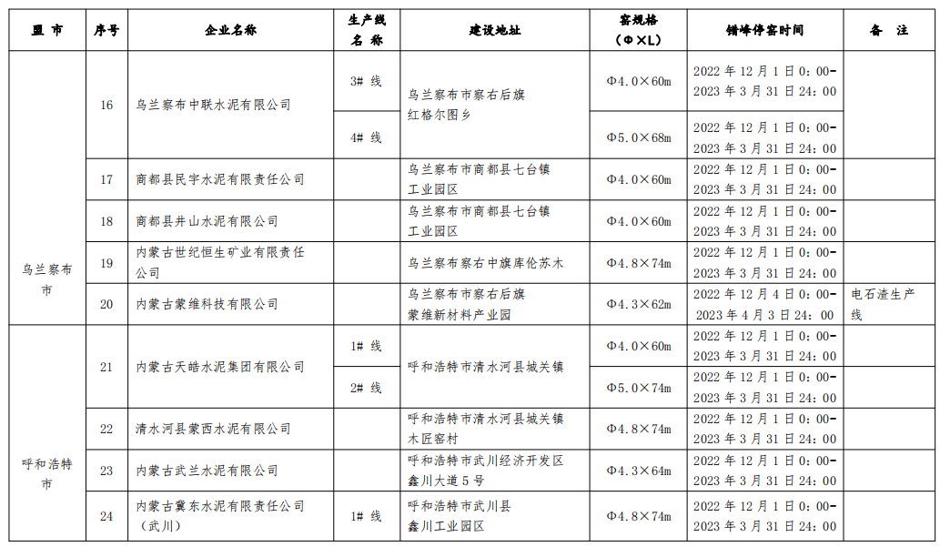 江西省在產(chǎn)49條旋窯生產(chǎn)線2023年1月1日至2023年3月31日錯(cuò)峰停產(chǎn)。
