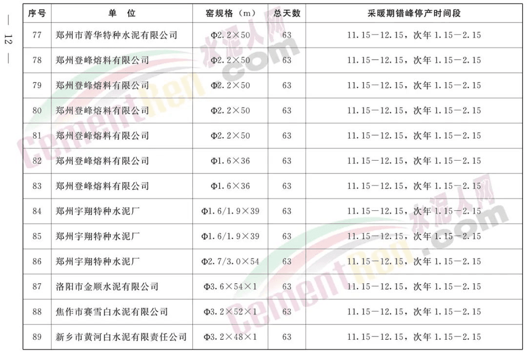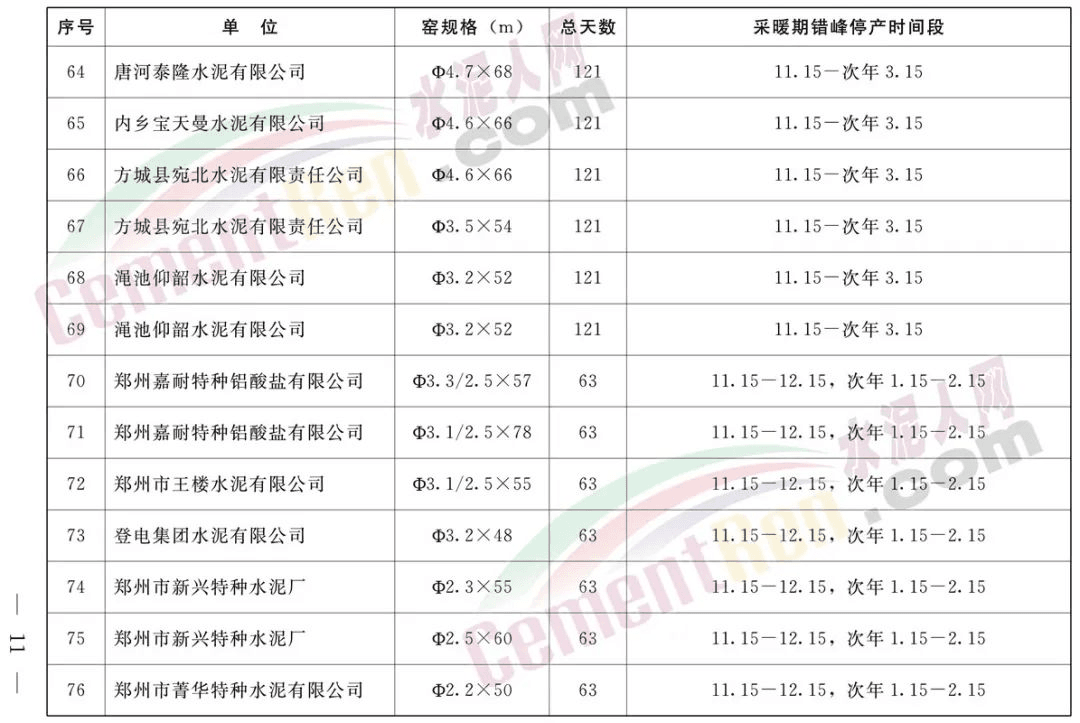 A級(jí)企業(yè)定于2023年1月21日至同年3月15日停窯54天,采暖期共停窯101天;D級(jí)企業(yè)和未完成超低排放改造驗(yàn)收的企業(yè),自2022年11月15日至2023年3月15日,采暖期共停121天。