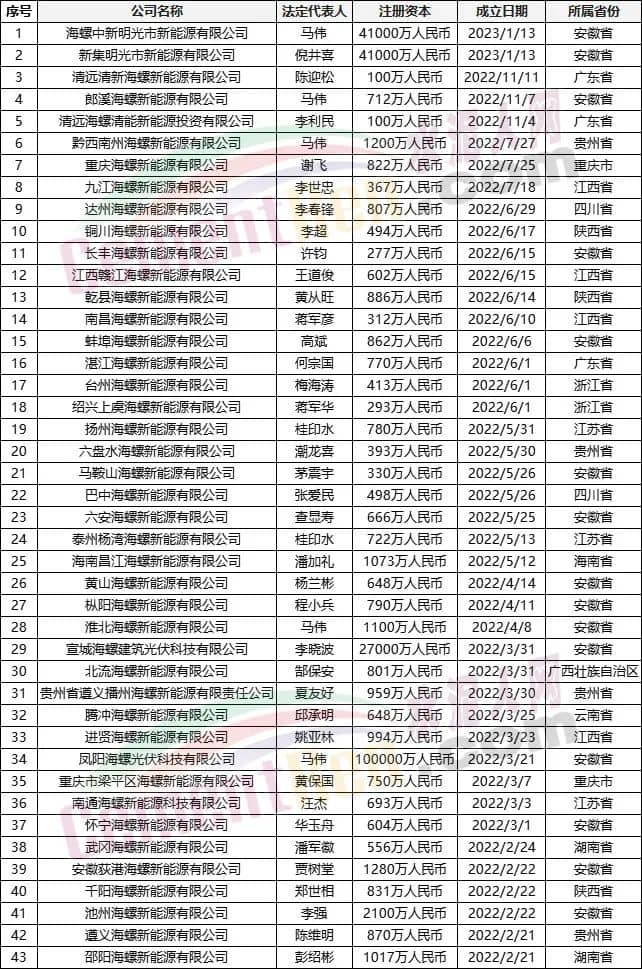 據(jù)不完全統(tǒng)計,海螺水泥近一年來已注冊成立40多家新能源公司。