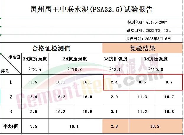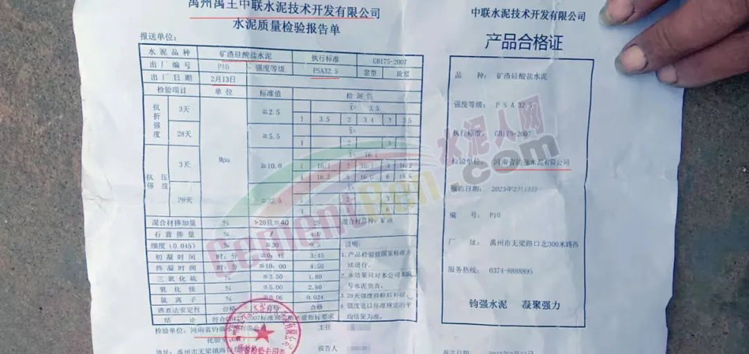 日前,河南省南陽(yáng)市某建材門(mén)市向水泥人網(wǎng)反映:“許昌禹州禹王中聯(lián)(PSA32.5)袋重不足,廠(chǎng)方所提供的質(zhì)量檢驗(yàn)報(bào)告單與攪拌站所測(cè)數(shù)值,相差甚遠(yuǎn)”。