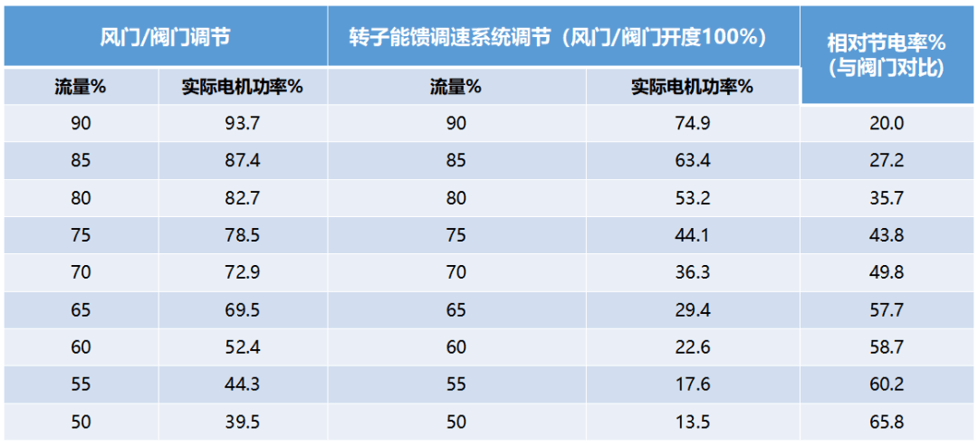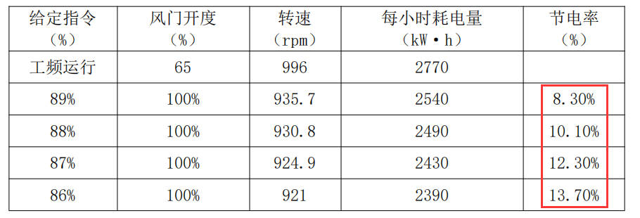 相較于工頻轉(zhuǎn)速,65%風(fēng)門開度節(jié)電率約為13.7%。