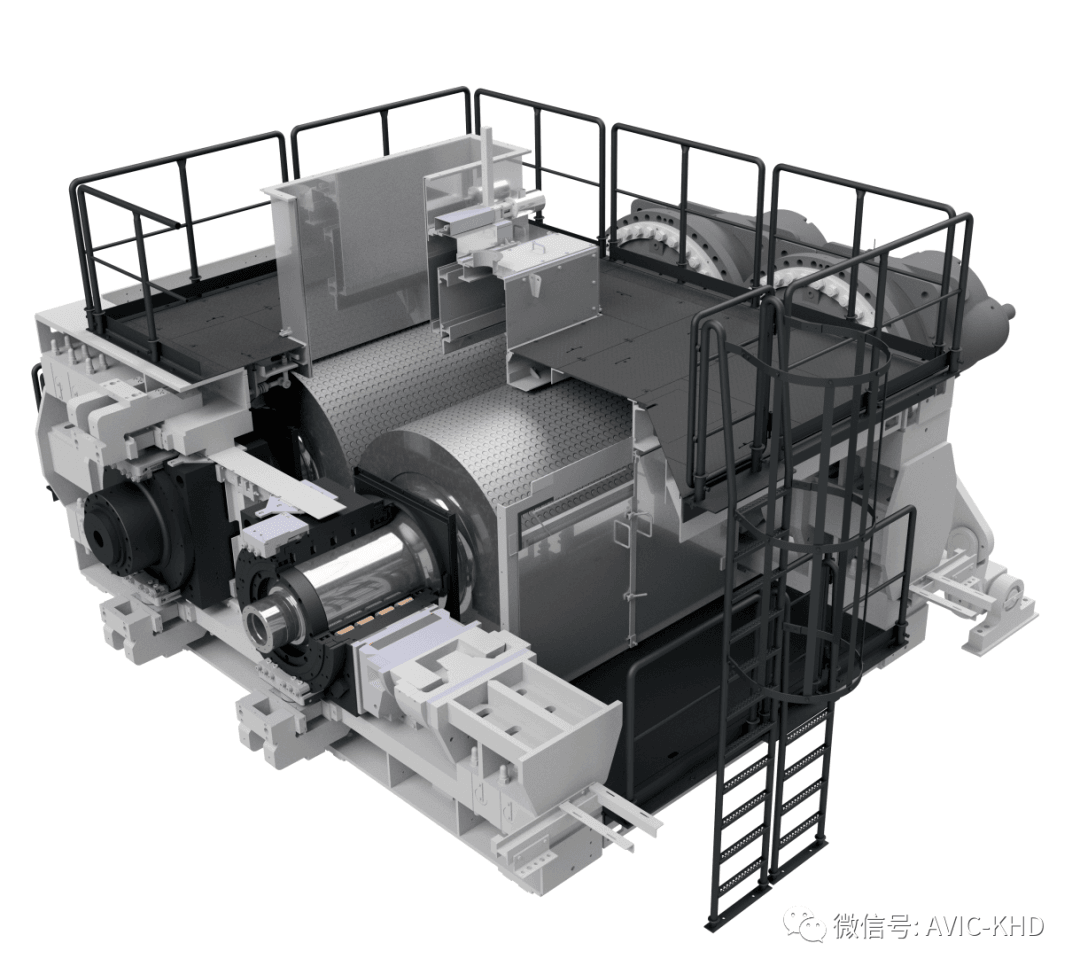 德國洪堡(KHD)公司的輥壓機具有設(shè)備運行可靠性高和低維護的優(yōu)點,可充分利用輥壓機壓力高的優(yōu)勢,最大限度地降低輥壓機外循環(huán)的物料,進而降低物料中間循環(huán)輸送的電耗。其采用軌道式設(shè)計,便于磨輥拆裝維護,配套電機頂部設(shè)計行車軌道,便于檢修電機拆裝維護。使用行車,小車及軌道運輸磨輥,不需要使用吊車。穩(wěn)壓倉擋板可以橫向和縱向調(diào)節(jié),可以確保密封和放置漏料,擋板內(nèi)部使用耐磨材料。