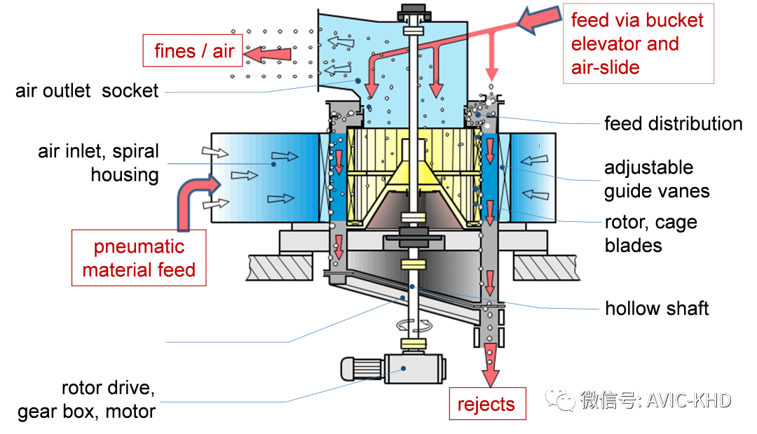 輥壓機系統(tǒng)中的選粉機采用德國洪堡(KHD)公司最新型號的靜態(tài)V型選粉機和高效動態(tài)選粉機,具有選粉效率高、水泥顆粒級配更加合理的優(yōu)勢。