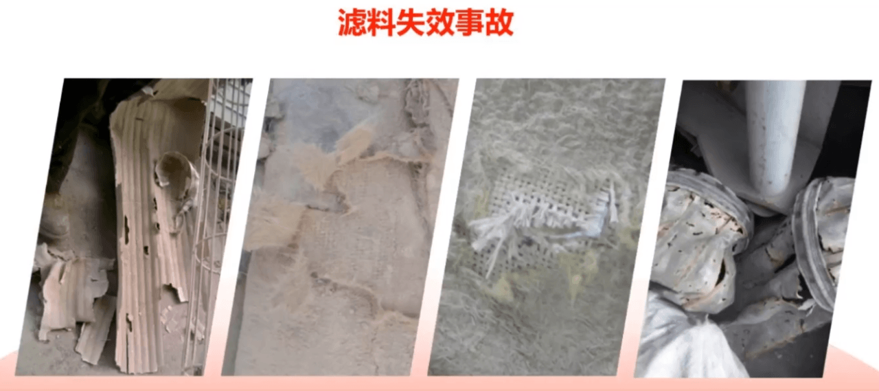 不同的固廢及危廢均會對濾袋表面產生一定的影響。主要影響表現在粉塵排放超標、壓差高、濾袋壽命縮短等方面。
