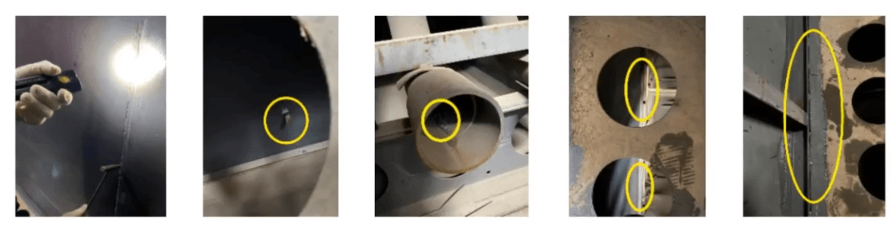 5 及時維護除塵器蓋板等各處漏風、漏水問題。漏風可能導致冷空氣進入后,局部結露腐蝕,除塵器入口負壓不足,系統壓差增大等。
