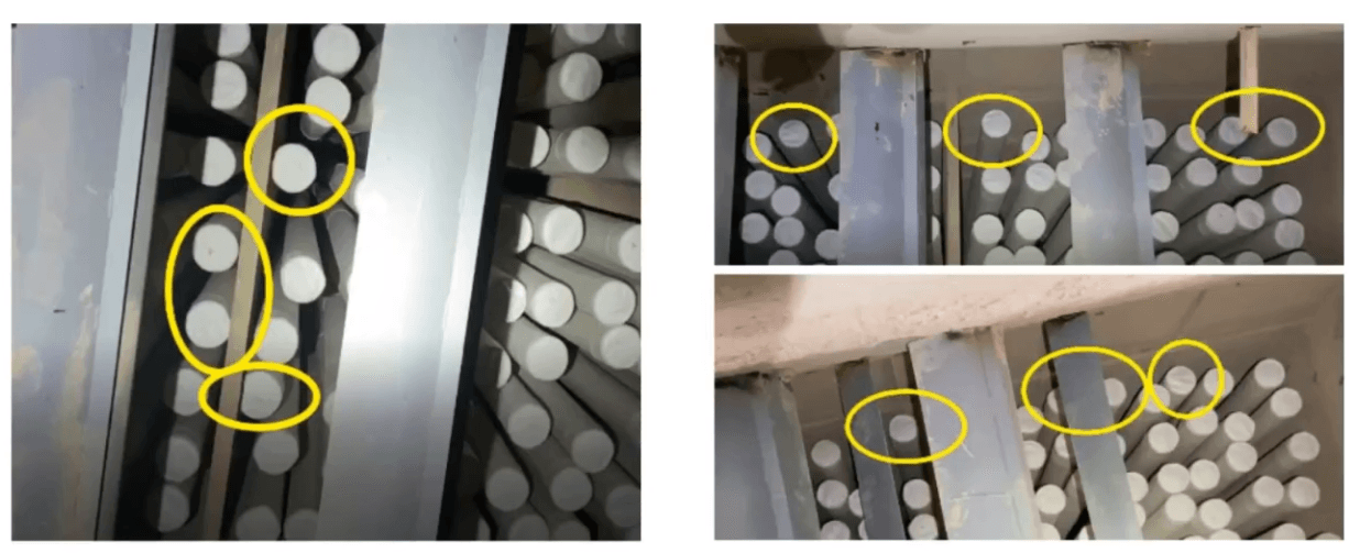 6 檢查除塵器灰斗煙氣入口處是否有堆灰現象。堆灰可導致截面積減小,氣流流速增大,系統壓差增大,并可能造成局部位置的濾袋沖刷磨損