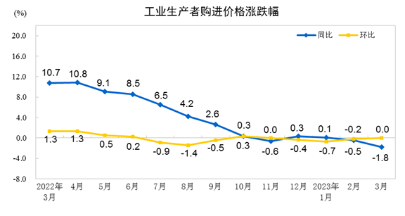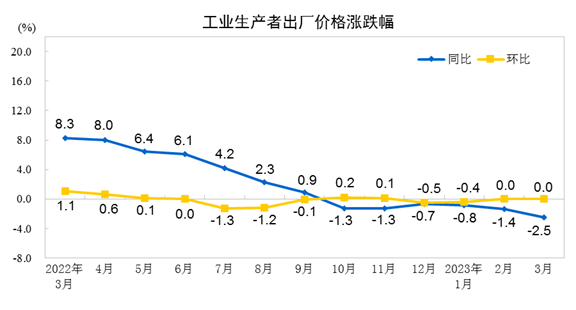 3月份全國工業生產者出廠價格(PPI)同比下降2.5%,環比持平,而且是從去年的10月份就開始轉跌了,到今年3月份跌幅進一步擴大。PPI下跌,也意味著市場供應量大于需求量,導致競爭激烈,產品降價拋售。