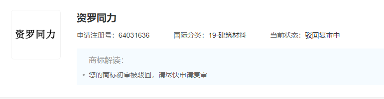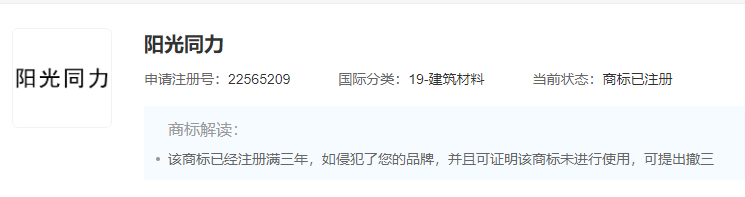 “洛新同力”,商標(biāo)申請人為洛陽畔山水泥有限公司。2023年2月10日商標(biāo)注冊申請被駁回,當(dāng)前狀態(tài)為等待實質(zhì)審查。