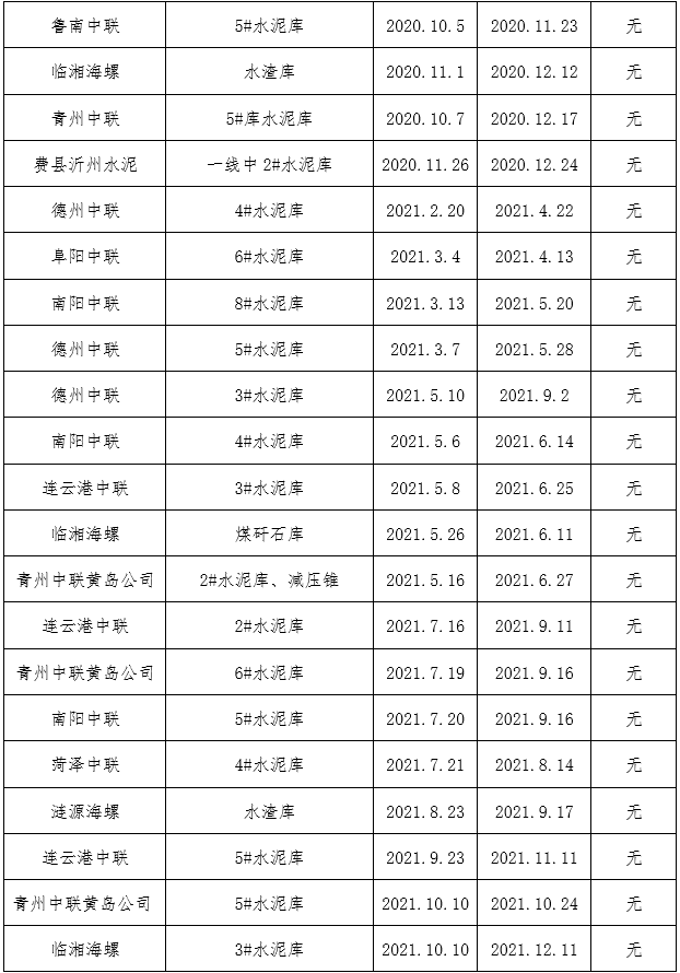 在清庫作業全部結束并驗收合格后,施工方應依照水泥企業相關要求,恢復所有技改項目,尤其要密封各部位孔門,避免出現漏水情況,造成后期儲存庫使用周期縮減。在施工過程中一定要避免開孔等一切破壞儲存庫原始結構的作業,尤其是磚混結構的庫型,鋼板倉要格外注意焊縫、材料應力等問題。