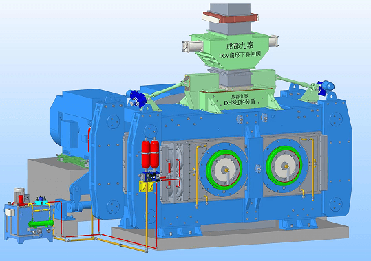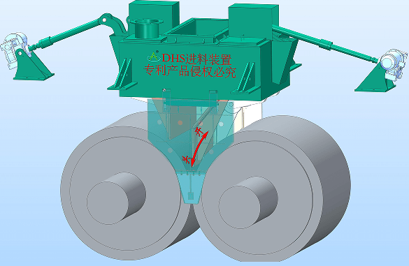 輥壓機負荷運行中,兩輥間物料的連續(xù)性和密閉性對輥壓機的穩(wěn)定運行至關(guān)重要,直接影響輥壓機效率的發(fā)揮。長期以來,輥壓機在生產(chǎn)環(huán)節(jié)中,往往忽視了料床對輥壓機的影響,輥間物料溢散,循環(huán)負荷大,設(shè)備磨損加劇,而輥壓機效率不高,導(dǎo)致能耗居高不下,嚴(yán)重影響經(jīng)濟指標(biāo)。新型的進料裝置---DHS弧形進料裝置完美的解決了這個問題。