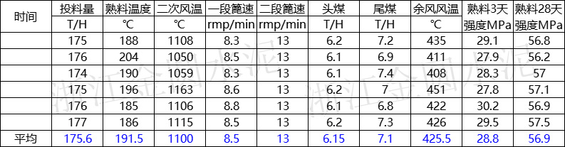 二次風溫:平均值≥1150,中控顯示數據(產量:2800-3000t/d);