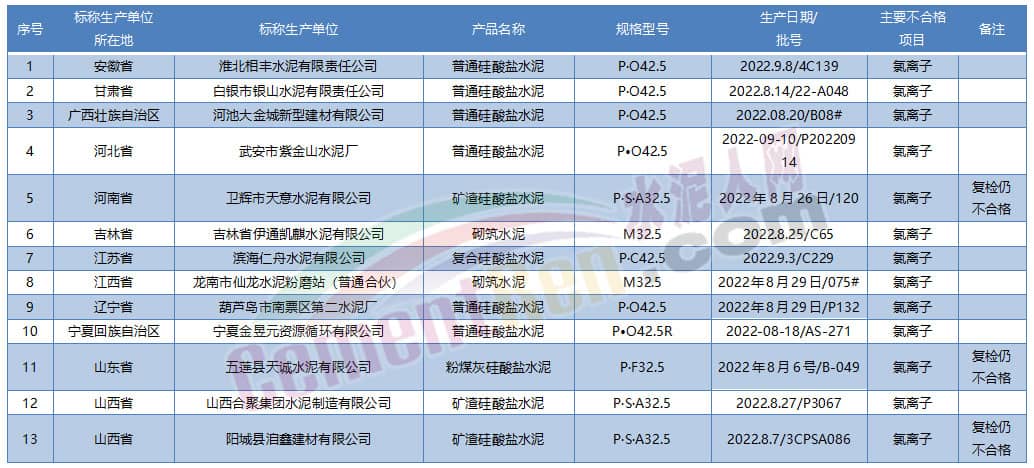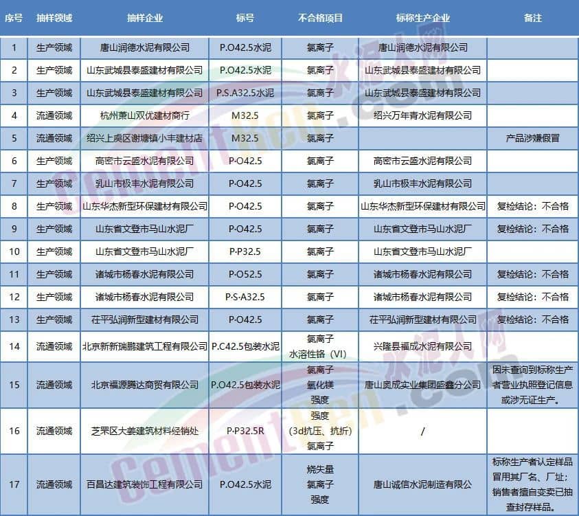 近期各地市場監(jiān)管部門公布35批次不合格水泥中有17批次水泥氯離子不合格。