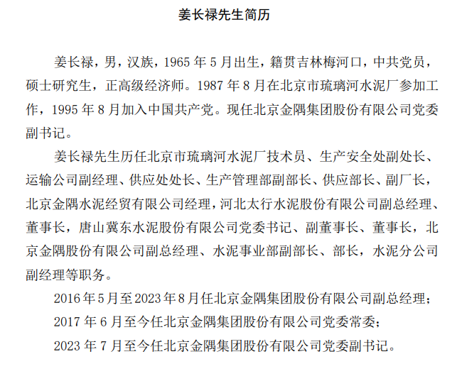金隅冀東24日晚間公告,提名顧昱先生、姜長祿先生為公司董事候選人。聘任顧昱先生為公司總經(jīng)理,聘任孔慶輝先生為公司副總經(jīng)理,任期與本屆董事會任期一致,同時孔慶輝先生不再擔(dān)任公司總經(jīng)理助理。