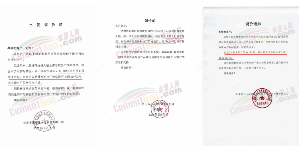 9月8日,雙鴨山新時(shí)代水泥、長(zhǎng)春新天山北方水泥龍東營(yíng)銷中心伊春銷售部、三江銷售部分別通知,各品種水泥價(jià)格上調(diào)50元/噸。