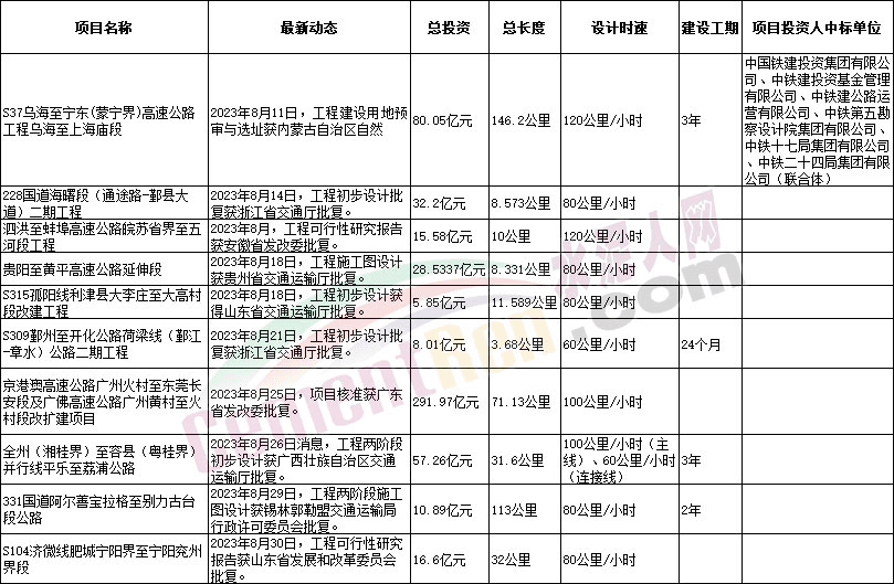 據水泥人網了解,9月份以來,包括國家發改委、省級發改委及交通廳、自然資源部以及交通運輸部等多個部門審批通過了14個重大交通項目,其中包括公路項目10個,鐵路項目2個,城軌交通項目和機場項目各1個,工程總投資約1830億元。