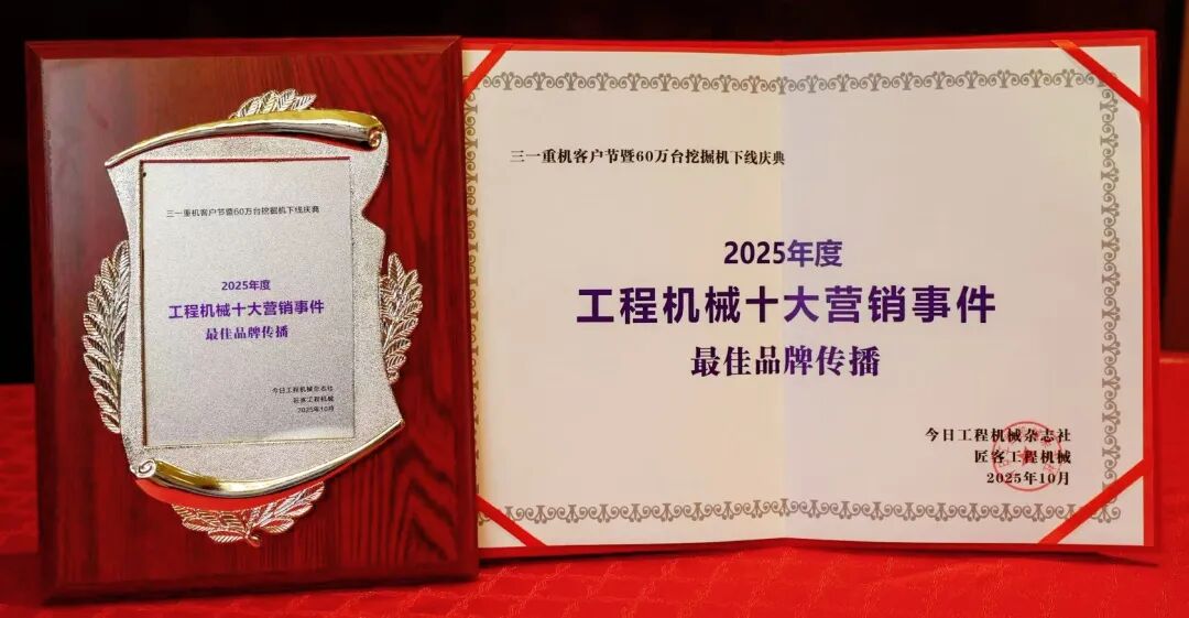 2025年10月22日,“2025年度工程機(jī)械十大營銷事件”在江蘇常州重磅發(fā)布。“三一重機(jī)客戶節(jié)暨60萬臺挖掘機(jī)下線慶典”榮登“2025年度工程機(jī)械最佳品牌傳播事件”。
